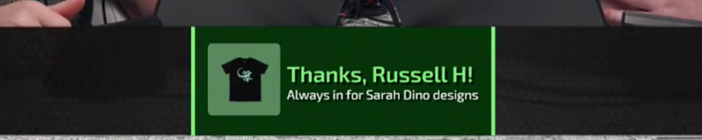 Russell H message Thanks, Russell H! Always in for Sarah Dino designs Timestamp